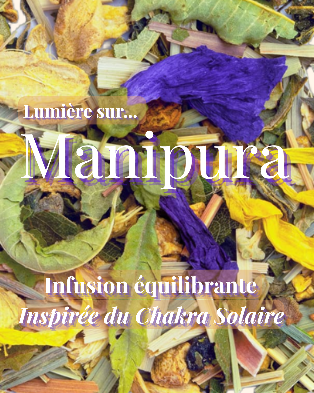 Infusion équilibrante & digestive au gingembre & à la verveine.Inspirée du chakra solaire, Manipura réveille la vitalité, apporte clarté et chaleur intérieure. Une infusion lumineuse, idéale pour retrouver équilibre et énergie douce.